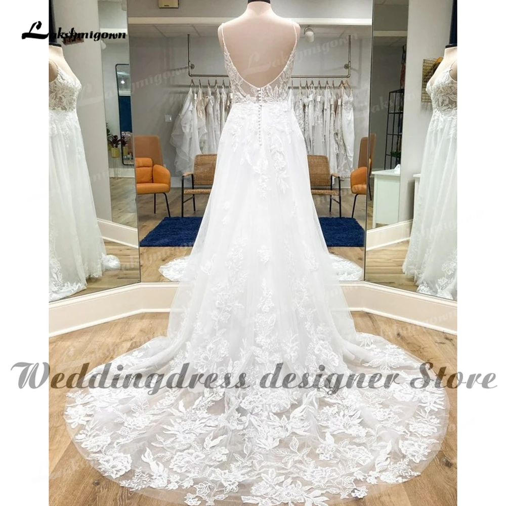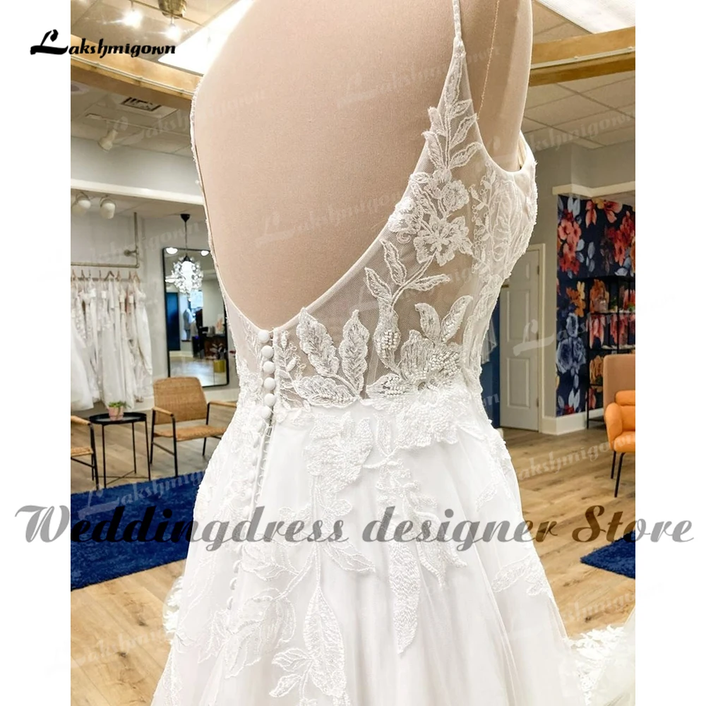 Сексуальные свадебные платья на тонких бретельках, богемное кружевное свадебное платье из тюля с аппликацией, женское платье