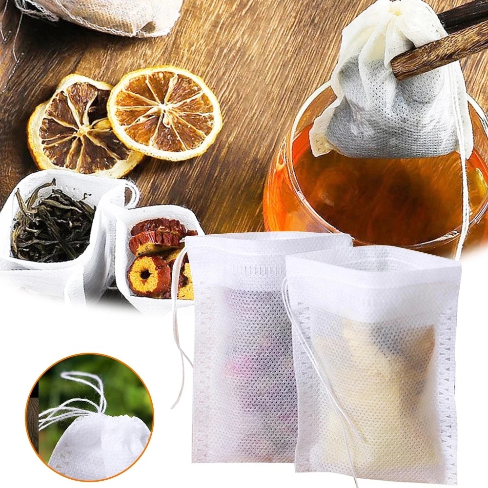 Одноразовые чайные пакетики 100 шт., фильтрующие пакетики для заварки чая со шнурком, с запахом, из пищевого нетканого материала, оригинальные чайные пакетики