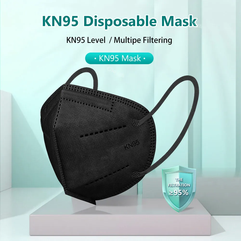 FFP2 маска черные маски для лица KN95 Mascarillas взрослые 5 слоев ...