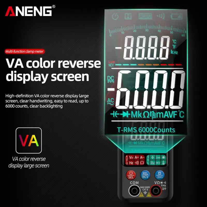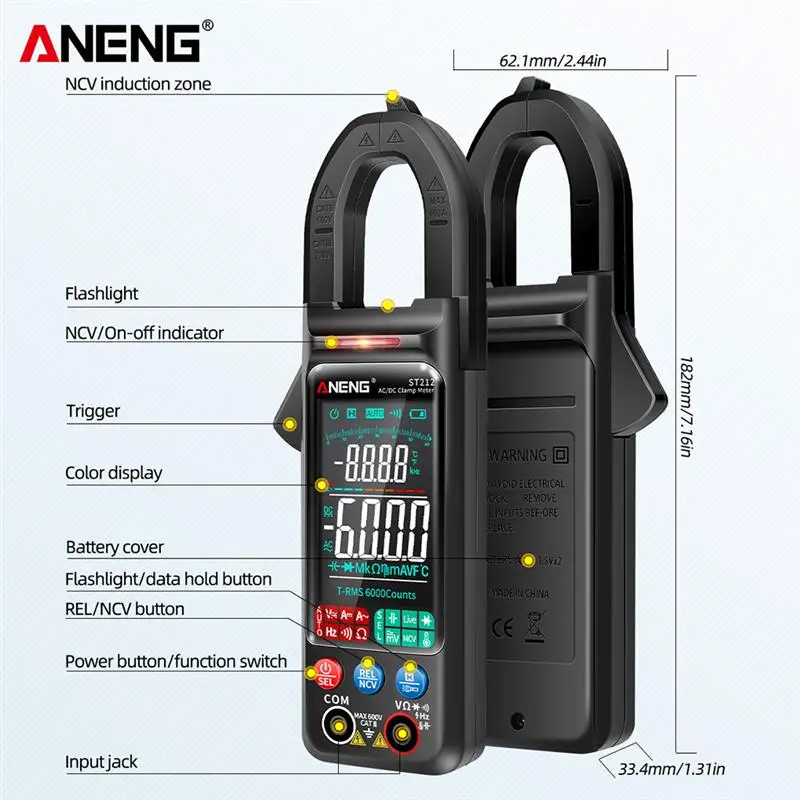 Цифровой зажим ANENG ST212, мультиметр 400A с цветным экраном, 6000...