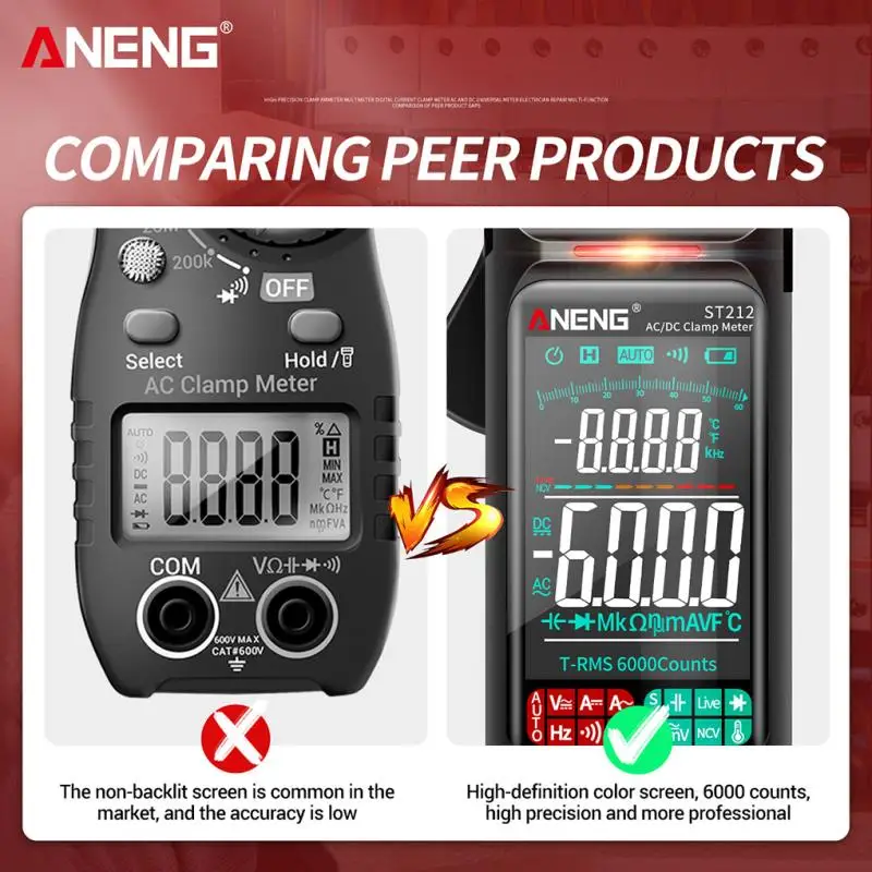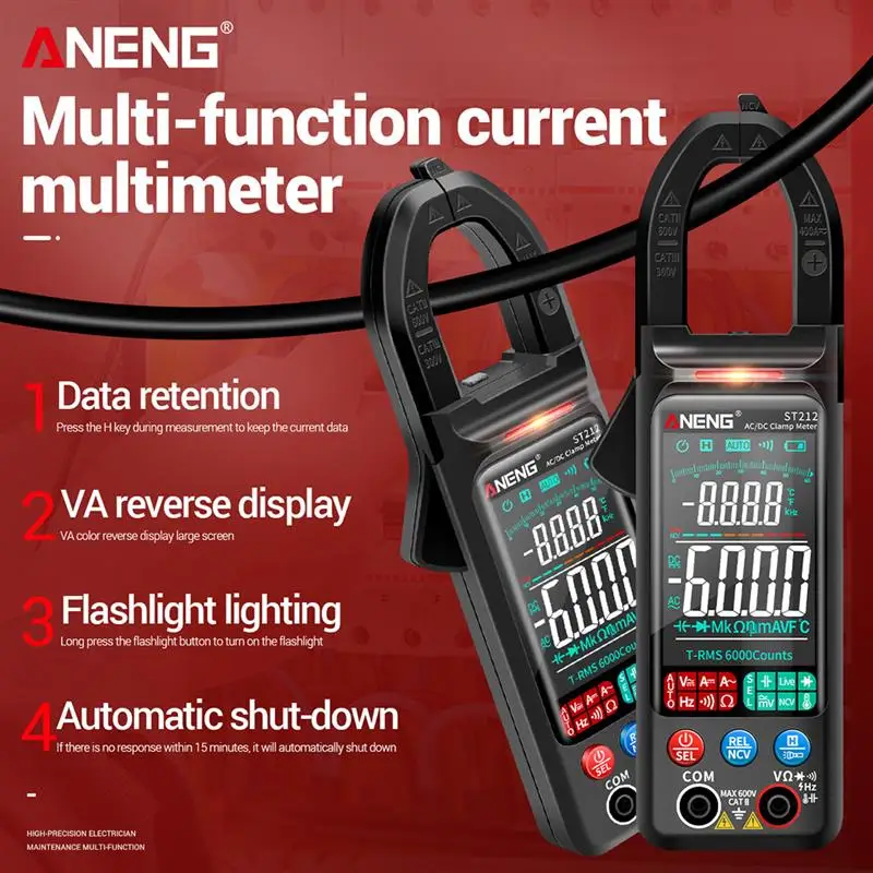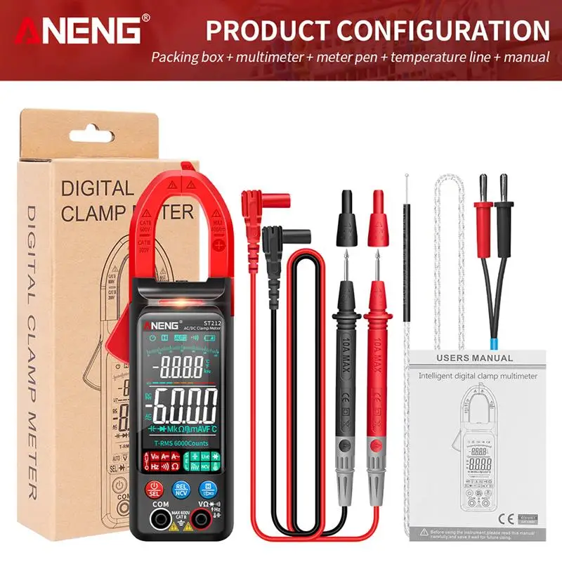 Цифровой мультиметр-зажим ANENG ST212, 6000 отсчетов, Постоянныйпер...
