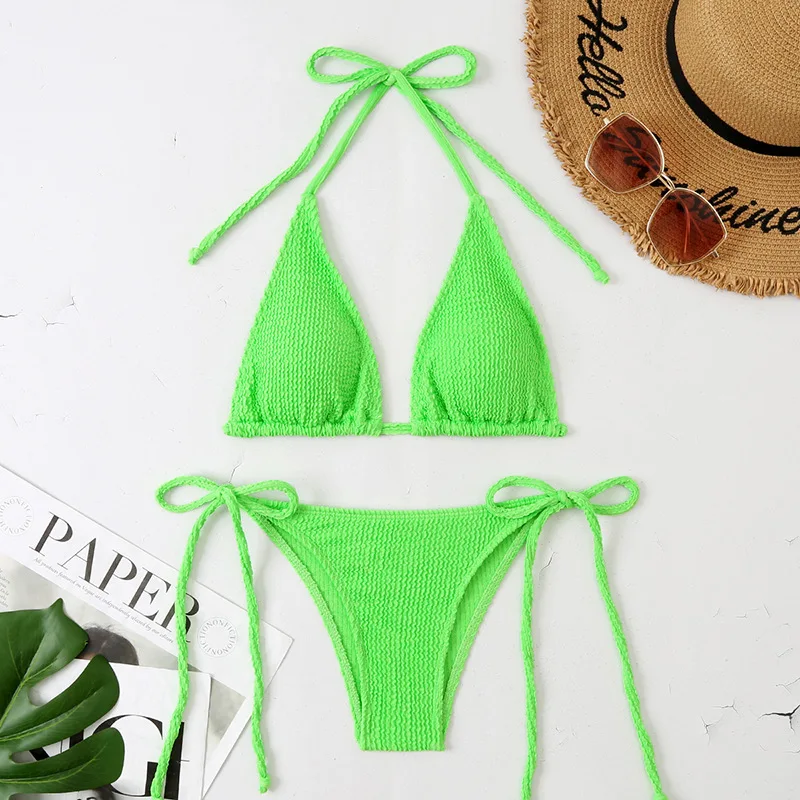 Сексуальный треугольный комплект бикини 2022, Женский однотонный ре...