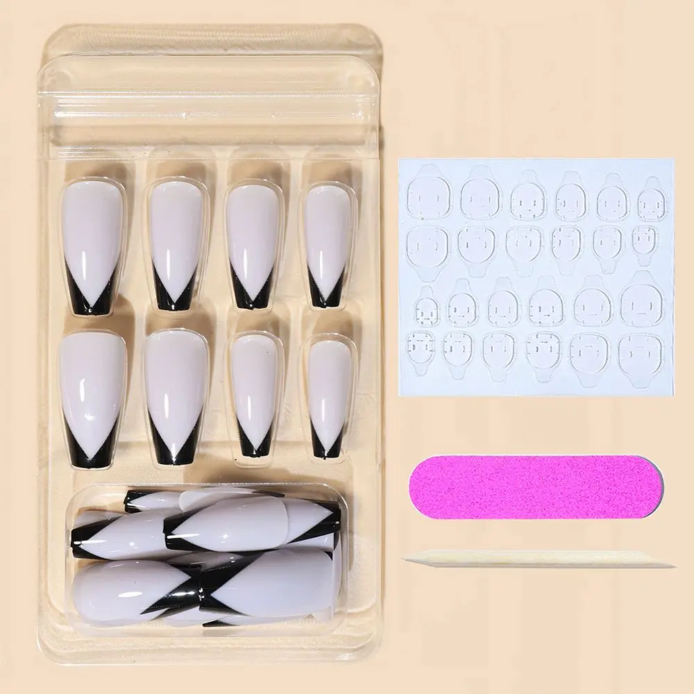 Накладные ногти в форме гроба, 24 шт., малыш, розовый дизайн, искусственные накладные ногти в форме балерины с клеем, полное покрытие, накладные ногти, накладные ногти