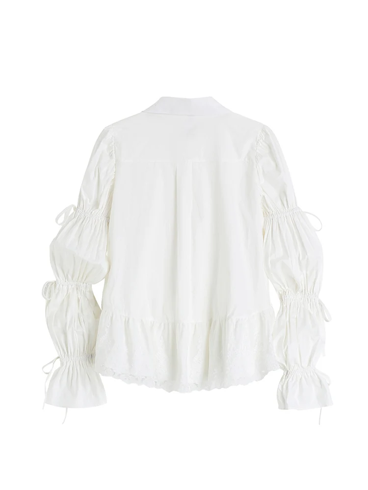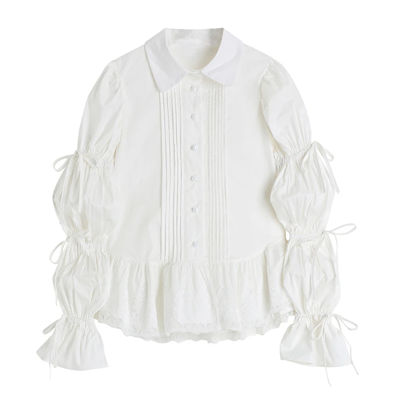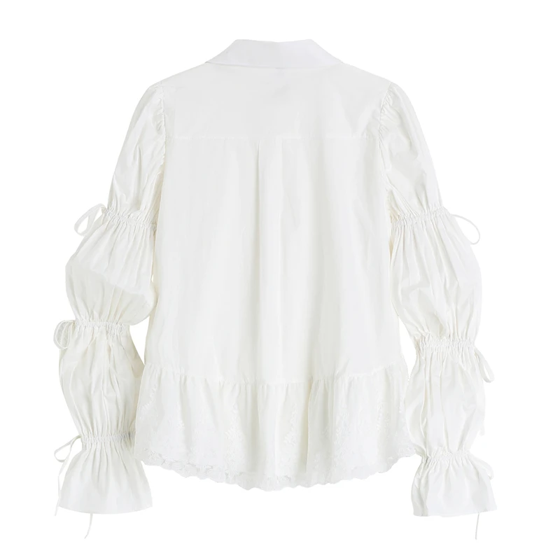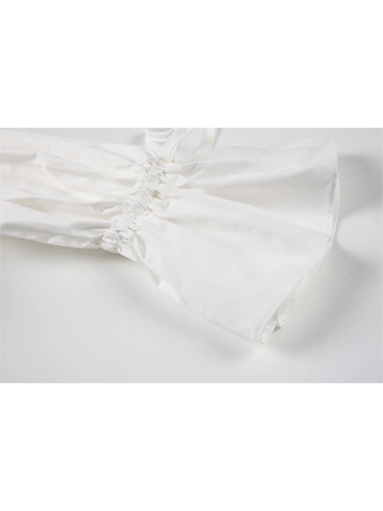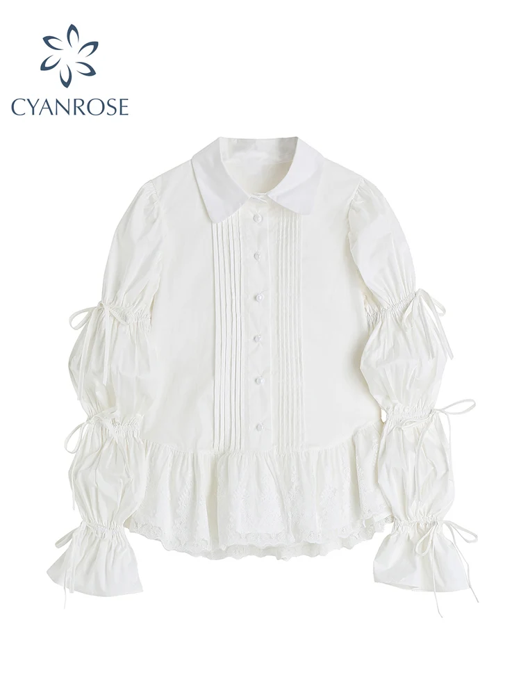 Рубашка женская однобортная с пышными рукавами, милая Элегантная модная офисная блузка в винтажном стиле, Повседневная белая, весна 2022