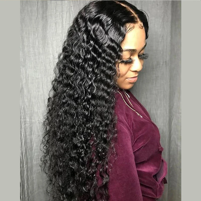Парик черный кудрявый Синтетический на сетке спереди, с гладкой поверхностью, из высокотемпературного волокна, мягкий кудрявый, для макияжа