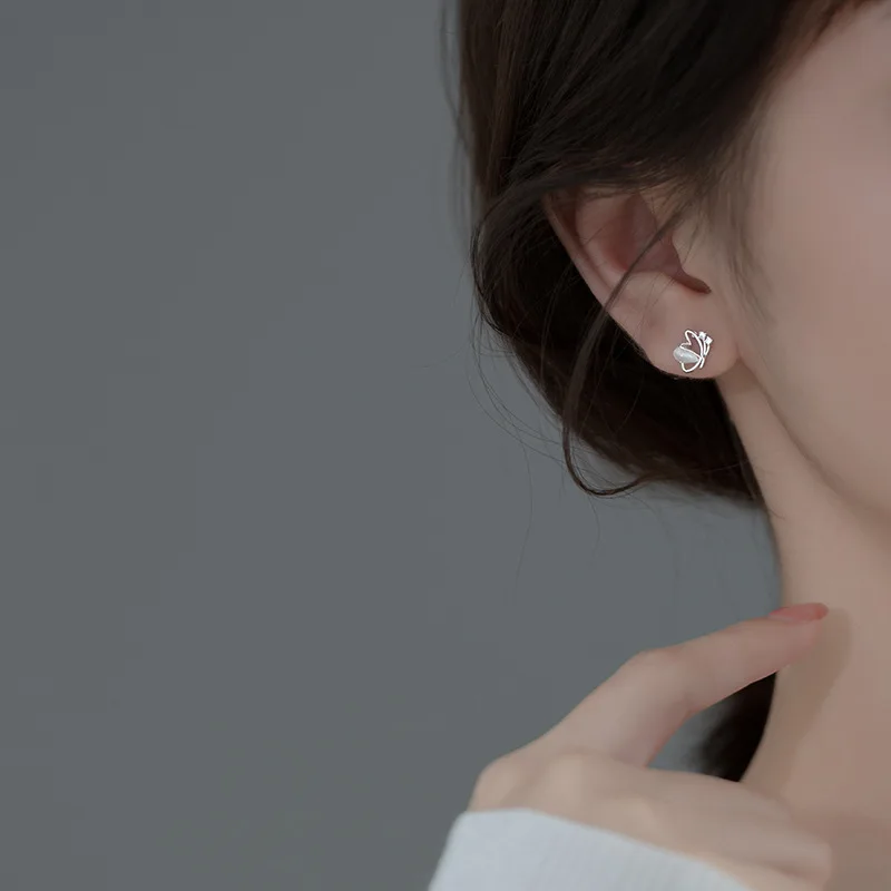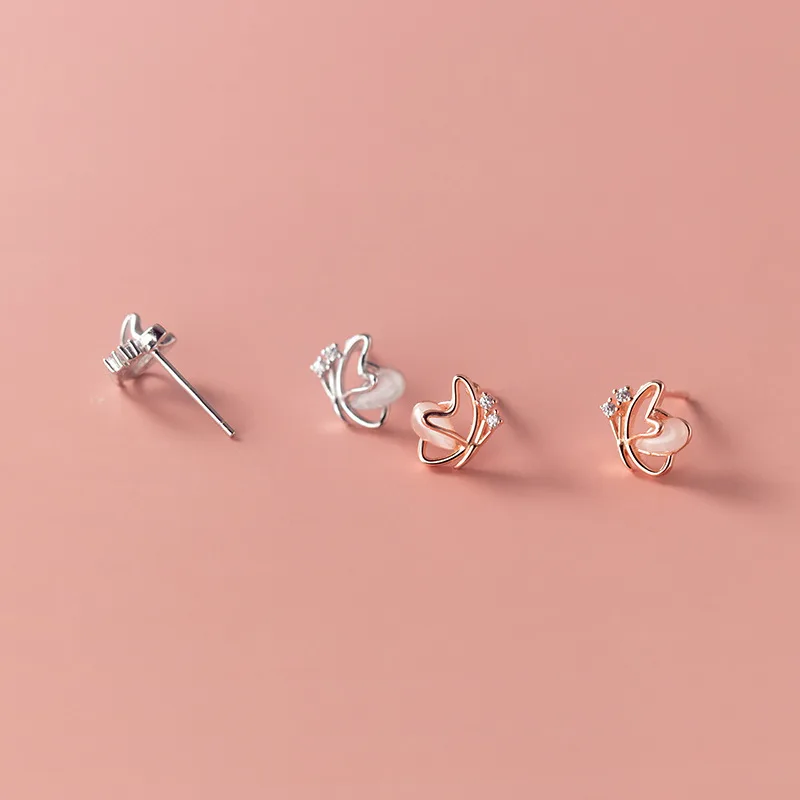 Серьги-гвоздики женские из серебра 925 пробы с цирконием и лунным к...