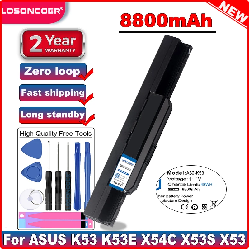 LOSONCOER 8800 мАч Аккумуляторный блок для ноутбука A32-K53 A41-K53...
