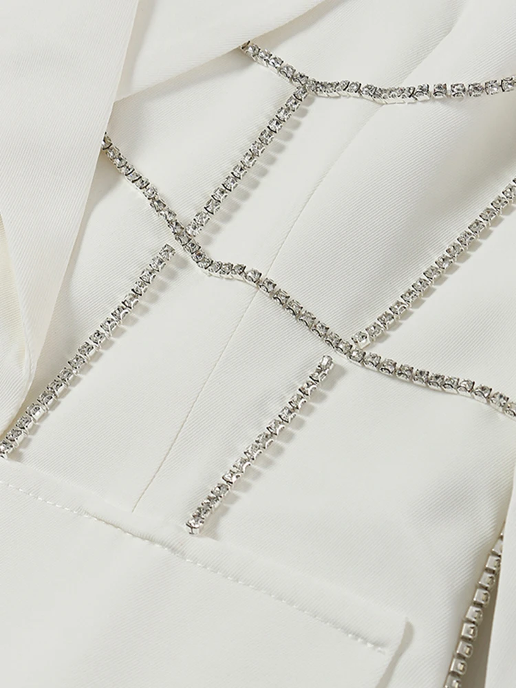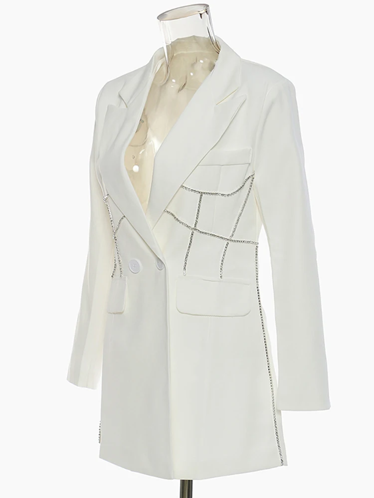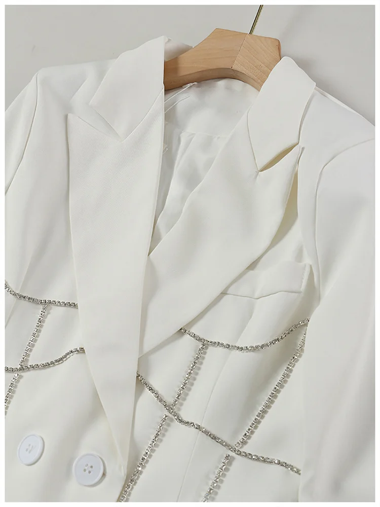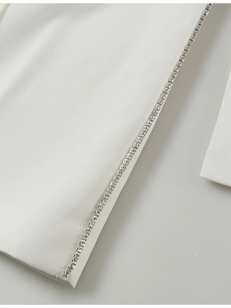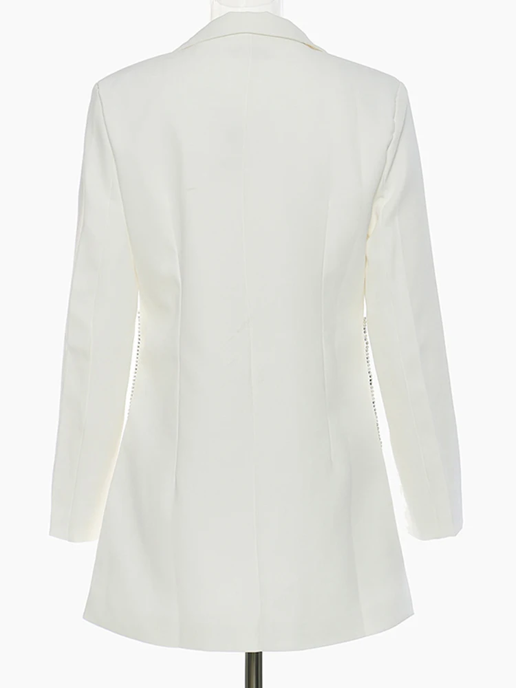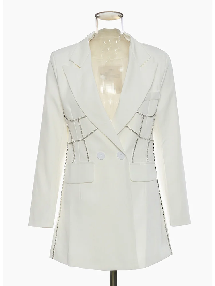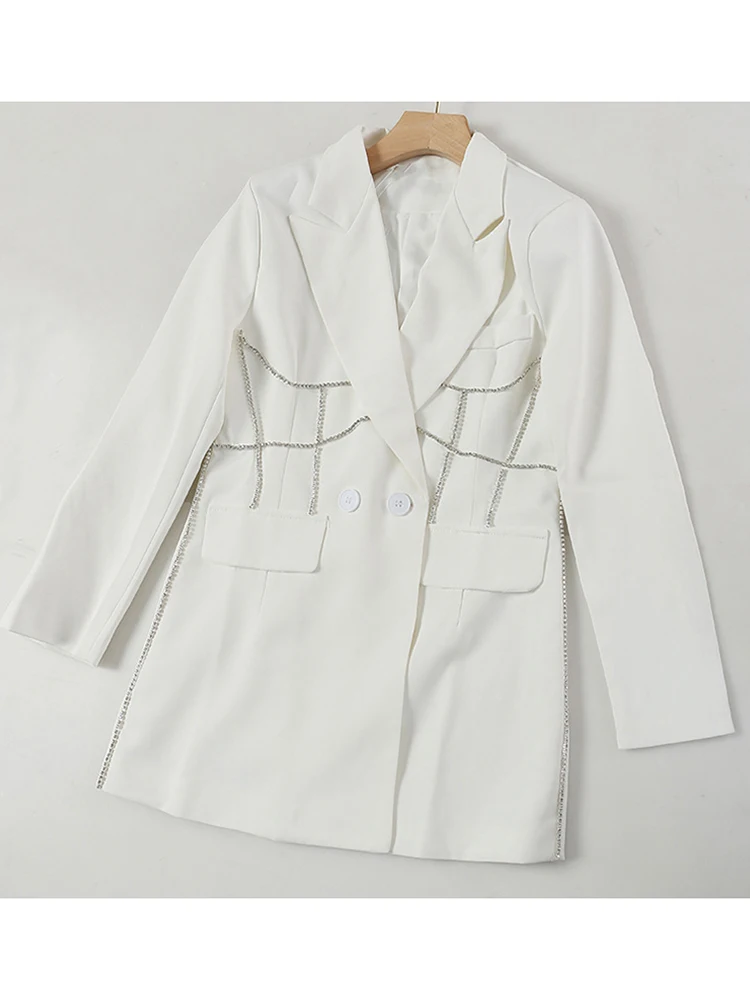 EAM женские белые стразы Длинный блейзер Новый нагрудные с длинным рукавом свободный покрой куртки модные тенденции; Сезон весна-осень; 2022 1DE6116