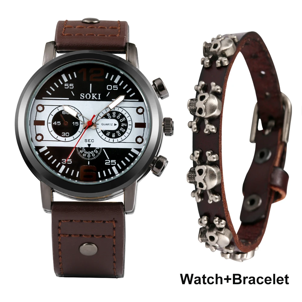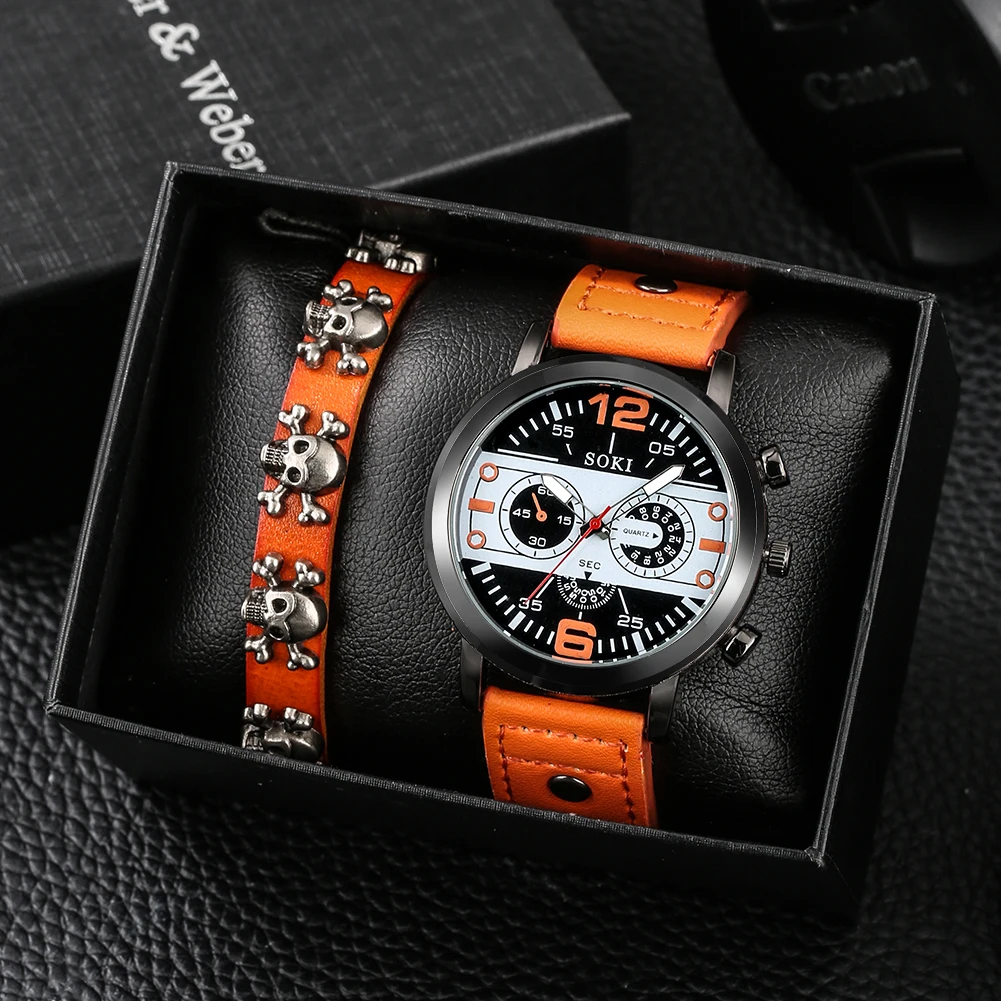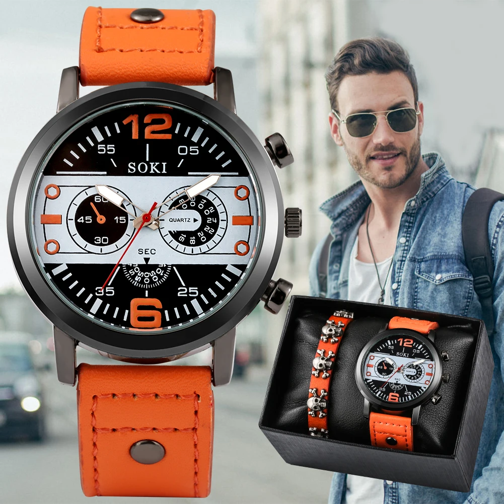 Наручные часы для мужчин, подарочный набор, модные повседневные кварцевые кожаные часы и браслет для мужчин, лучшие Оригинальные подарки, мужские часы