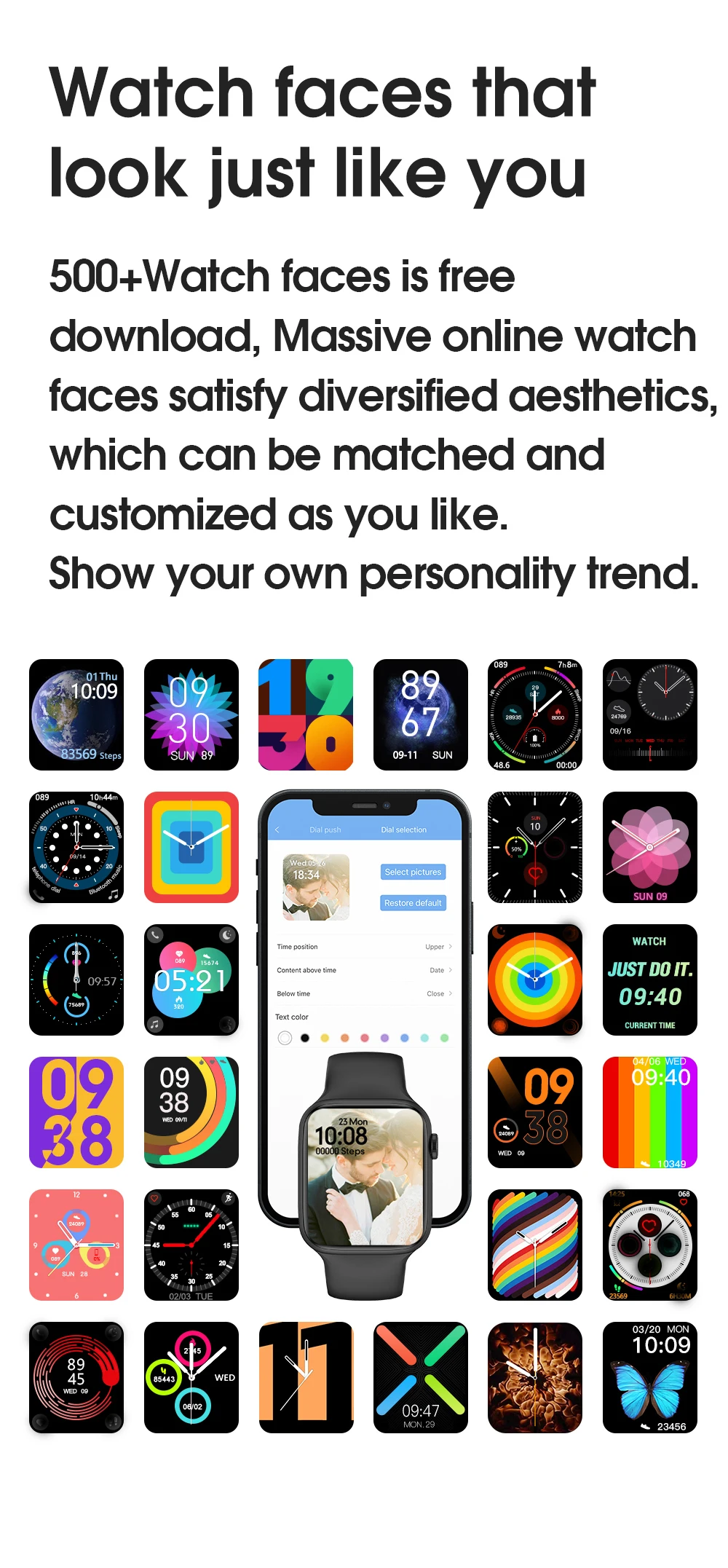 Пункты продажи:Дисплей 1,9 дюйма, загрузка циферблата 500 +, двойной режим Bluetooth