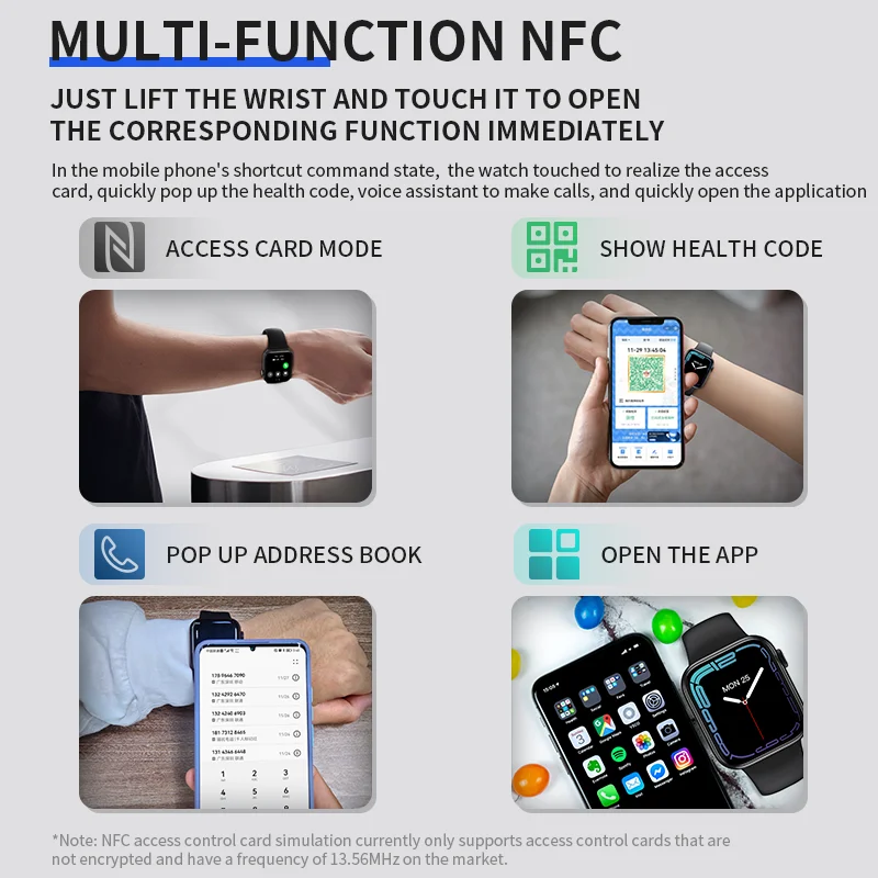 【 Функция NFC 1) посылка карты: часы могут копировать данные карты контроля доступа на чип для часов, имитируя карту контроля доступа NFC, чтобы часы могли использоваться в качестве ключа.
