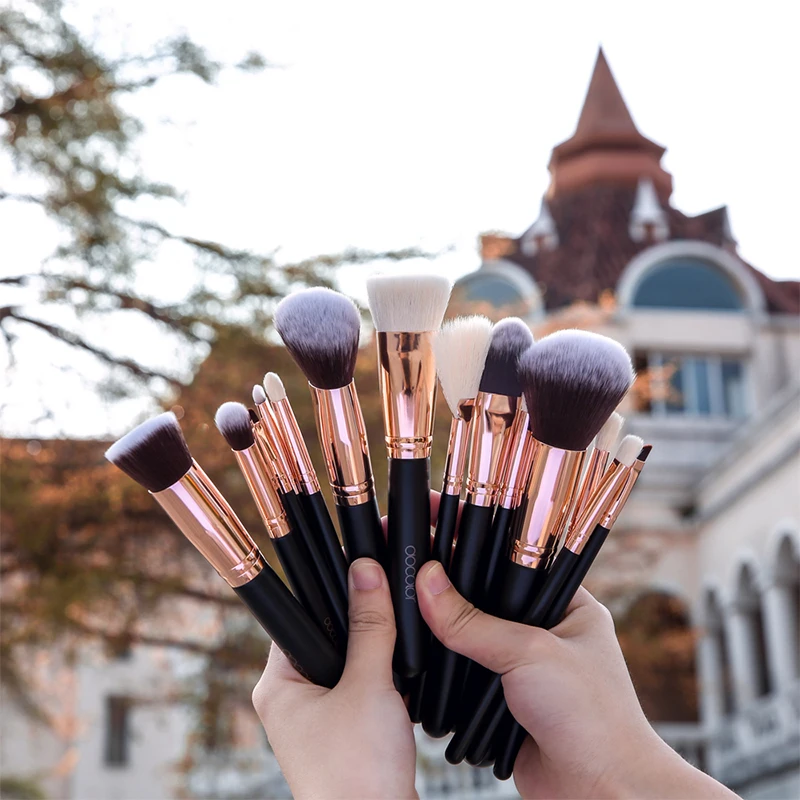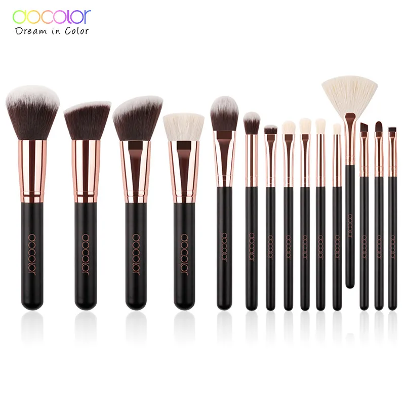 Docolor 15 шт набор кистей для макияжа тональная пудра, кисть для теней на веки козья щетина синтетические волосы Кисть для макияжа