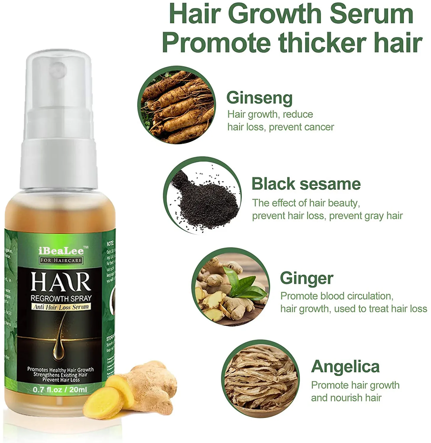 Имбирная сыворотка-спрей для роста волос, натуральная быстрорастуща...