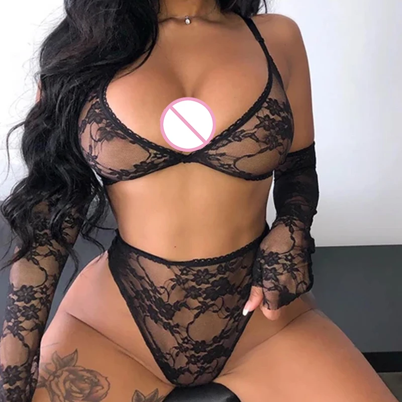 3 шт. эротические костюмы, цветочный кружевной топ, комплект с бюст...