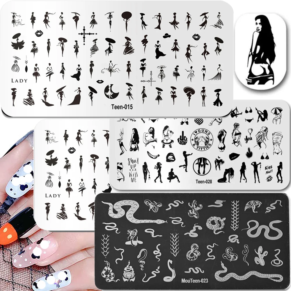 Новейший штамп для ногтей MouTeen030, леди, лицо, растения, штампов...
