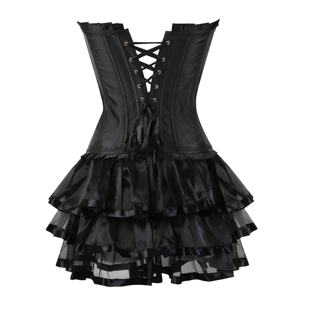 Сексуальное платье-корсет на шнуровке, Модный черный корсет с оборками, топ с юбкой-пачкой в стиле стимпанк, костюм для Хэллоуина размера плюс