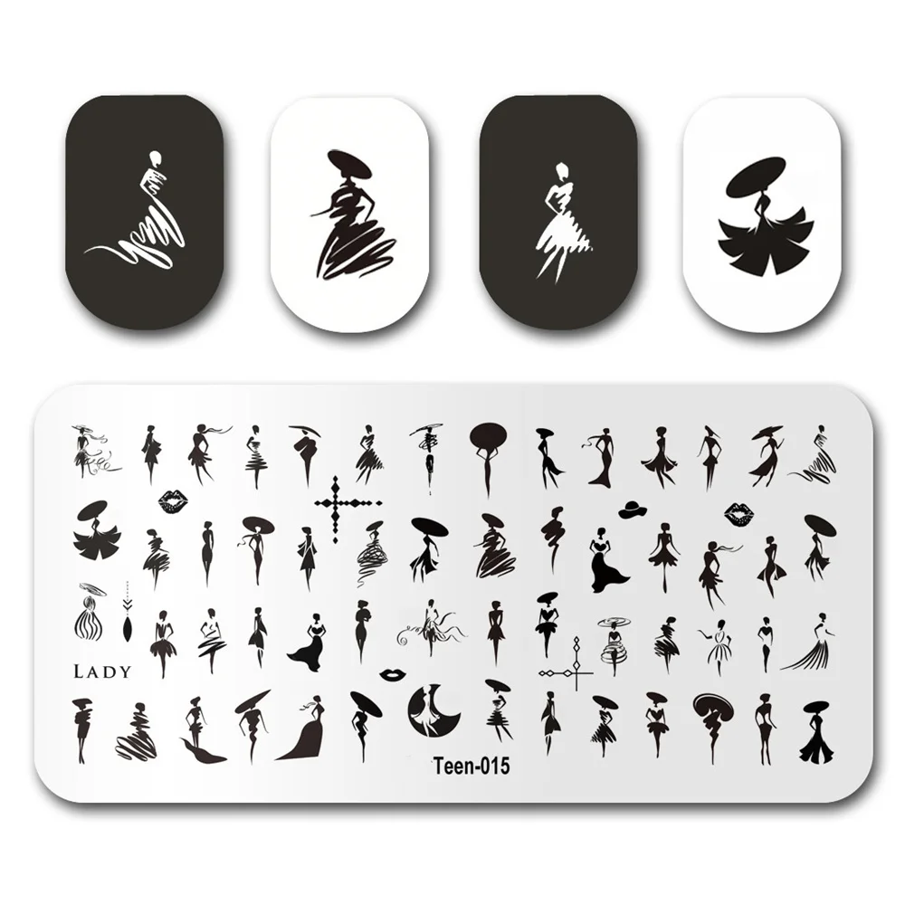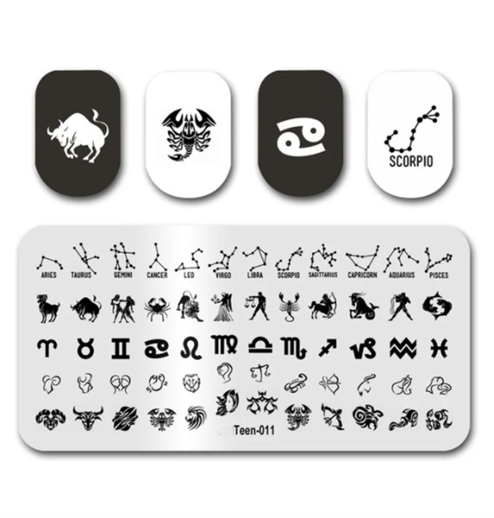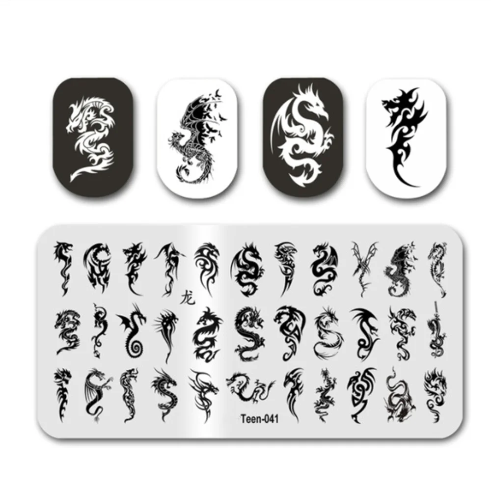 Штамповочные пластины 12*6 см, штамповочная печатная пластина для ногтевого дизайна в китайском стилезмеяфеианглийские буквы из нержавеющей стали трафареты изображений #1