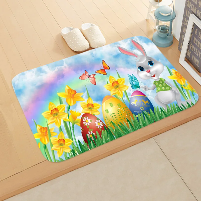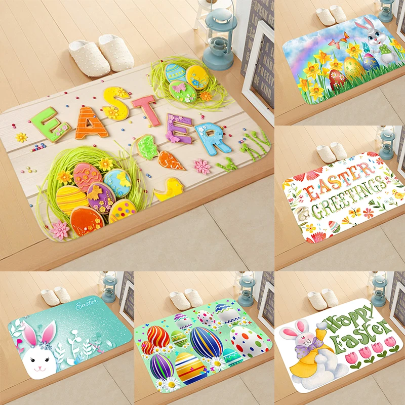 2022 Пасхальный фланелевый напольный коврик, мультяшное милое украшение для дома, пасхальные яйца кролика, украшение Вечерние