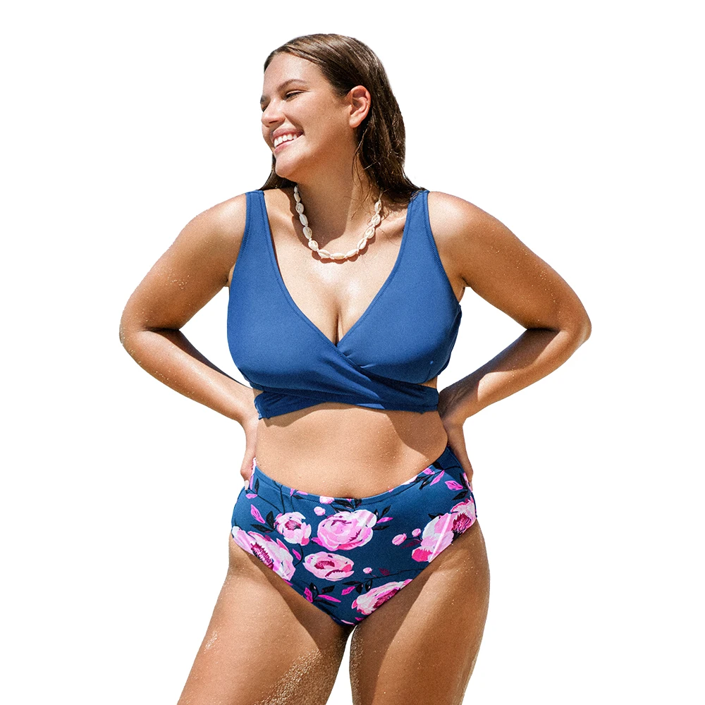 Женский раздельный купальник с V-образным вырезом и завышенной талией