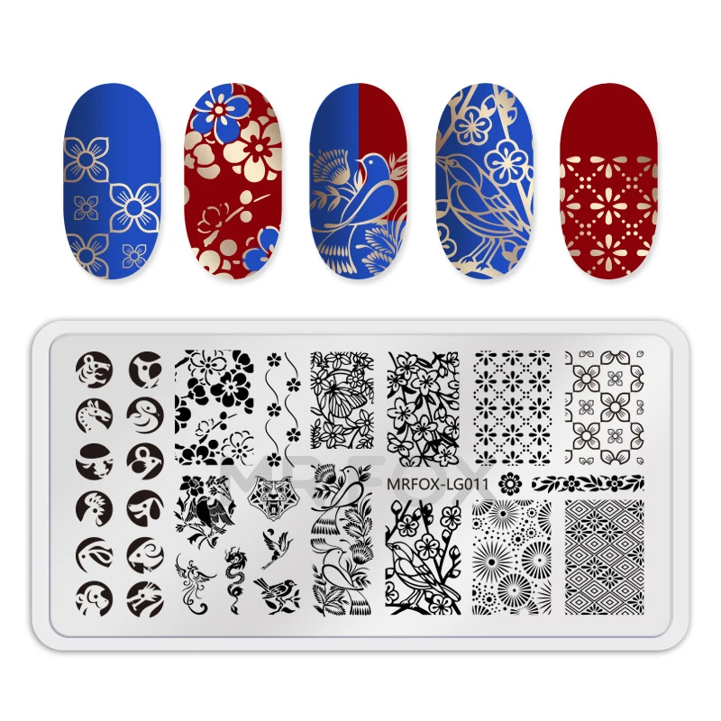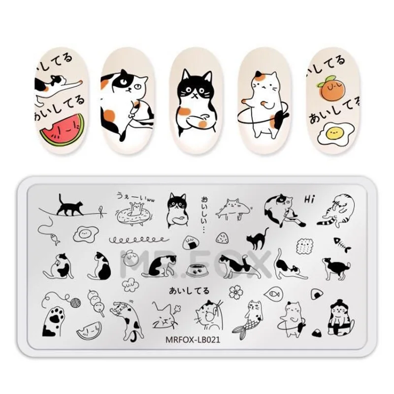 Китайский Знак зодиака штамповки пластин прямоугольный шаблон трафареты кот дизайн ногтей штамп пластины маникюр ногтей печать инструменты