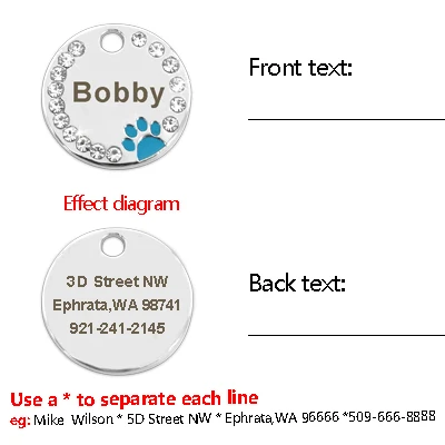 Тип: персональный идентификатор собакиЦвета: розовый, красный, синий, золотой, зеленый, ярко-розовыйХарактеристики: бесплатная услуга гравировки: имя питомца * номер телефона
