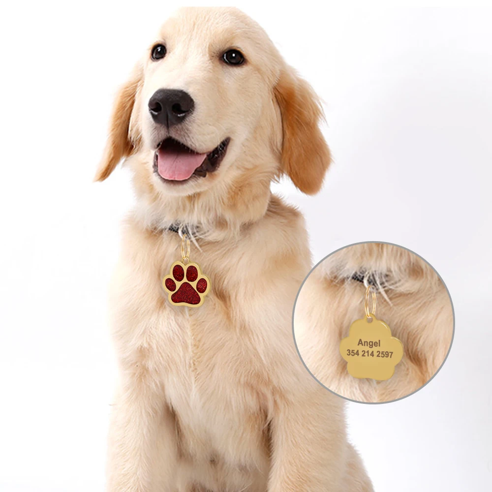 Персонализированная идентификационная бирка для собак и кошек, бирка в форме кости лапы, аксессуары для домашних животных с именем на заказ, подвеска для домашних животных с бесплатной гравировкой
