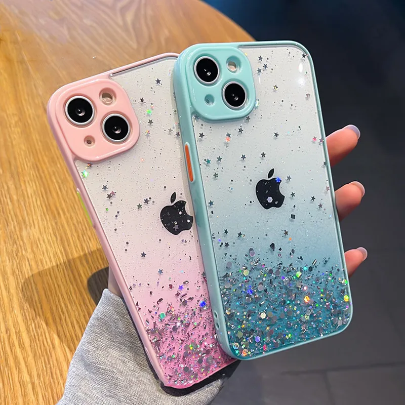 Прозрачный градиентный цветной блестящий чехол для телефона iPhone 13 11 12 Pro Max Mini X XR XS Max 7 8 Plus SE 2020 яркий чехол с блестками