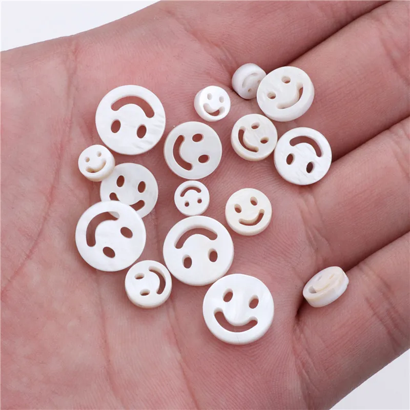 Бусины на удачу Улыбка, круглые подвески из натуральной ракушки со смайликом, подвеска из белой ракушки с улыбающимся лицом для изготовления ювелирных изделий, ожерелье, браслет сделай сам