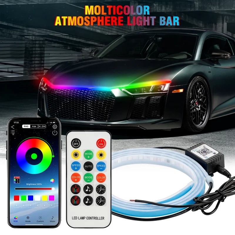Разноцветная Светодиодная лента RGB для автомобильной фары, универсальные дневные ходовые огни, световая балка для автомобиля, декоративсветильник световая балка с дистанционным управлением 12 В