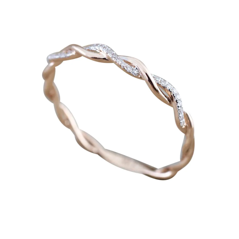 Тонкая цепочка, крученое кольцо, цвет розового золота, мини-кольцо ...