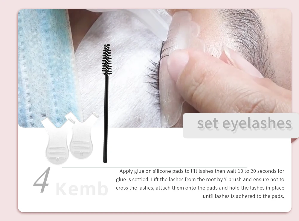 Шаг 1, очистите ресницы, удалите остатки масла, пыли или макияжа. Закрутите ресницы заранее, чтобы ресницы хорошо прилипали к колодки с подъемом.Шаг 2, выберите подходящие силиконовые прокладки (S,M или L), обрежьте их по мере необходимости.Шаг 3, нанесите клей на заднюю часть силиконовых подушек, а затем подождите 10 секунд и поместите подушечки на положение век, которое находится рядом с корнем натуральных ресниц.Удерживайте несколько секунд, пока прокладки не приклеиваются к крышкам.Шаг 4, нанесите клей на силиконовые прокладки, чтобы поднять ресницы, а затем подождите 10-20 секунд, пока клей будет установлен. Приподнимите ресницы от корня y-кисточкой и убедитесь, что не перекрещивайте ресницы, прикрепите их к подушечкам и удерживайте ресницы на месте доРесницы приклеиваются к подушечкам.Шаг 5, пожалуйста, откройте № 1 (Пермь), а затем аккуратно нанесите небольшое количество этого увлажняющего крема от корня до центра ресниц с помощью кисти.Время обработки: очень тонкие ресницы: 7-8 минут, тонкие или тонированные ресницы: 8-10 минут, здоровые ресницы: 10-12 минут.Шаг 6, пожалуйста, откройте #2 (фиксация), а затем нанесите небольшое количество фиксации от корня до центра ресниц. Время обработки совпадает с шагом 5 согласно клиентам.Шаг 7, удалите фиксацию с помощью чистого ватного тампона, затем используйте НОВЫЙ ватный тампон для нанесения #3 (моющее средство) для очистки Перми, фиксации и клея, вы можете использовать Средство для удаления макияжа для тщательной очистки остатков.Шаг 8, используйте НОВЫЙ ватный тампон для нанесения #4 (питание) на ресницы, очиститеЧерез 3 минуты.