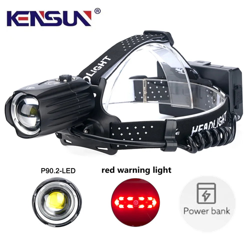 Налобный фонарь XHP90, с телескопическим увеличением, зарядка через USB, P90, уличное освещение