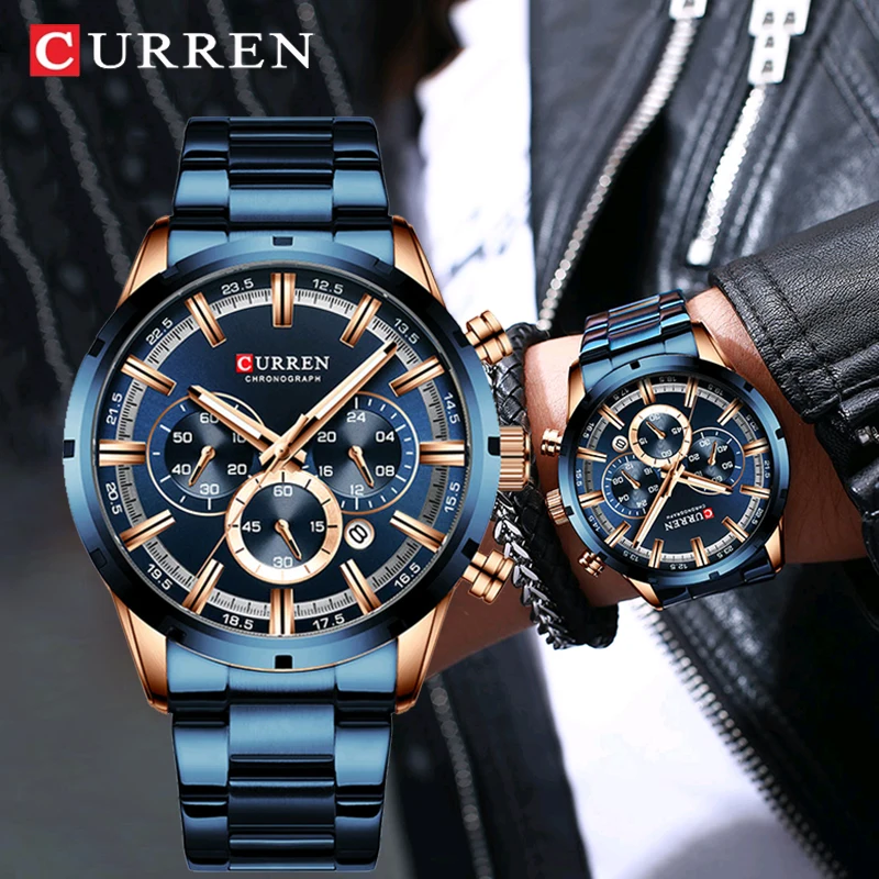 Часы CURREN Мужские кварцевые с хронографом, люксовые брендовые модные деловые спортивные водонепроницаемые из нержавеющей стали