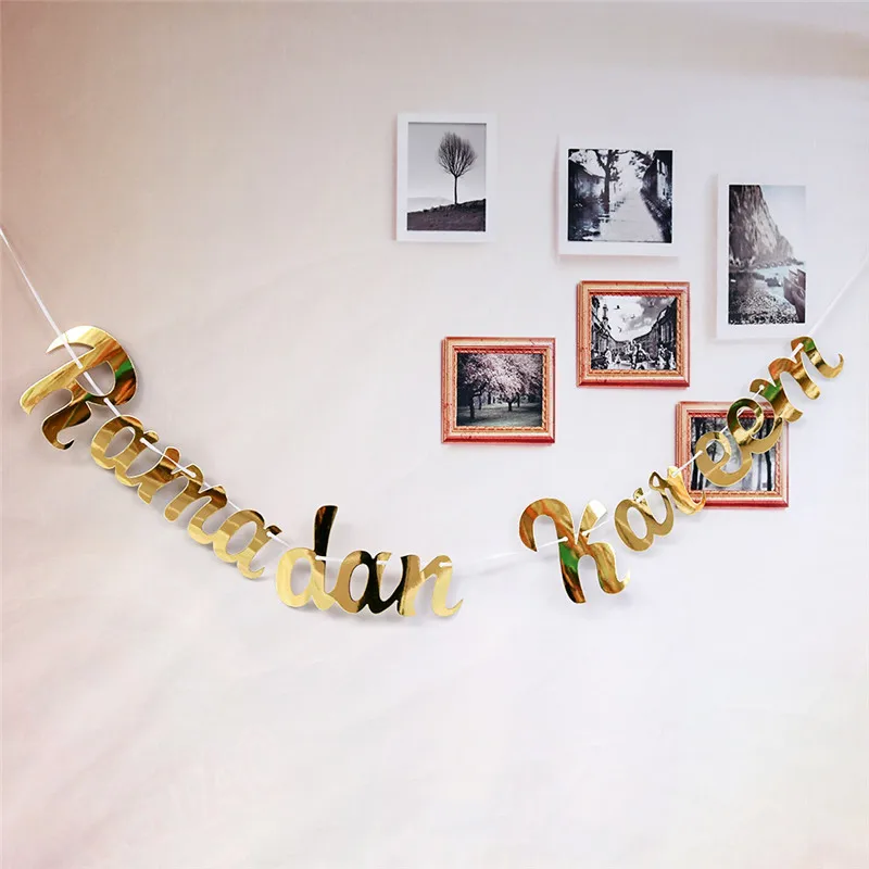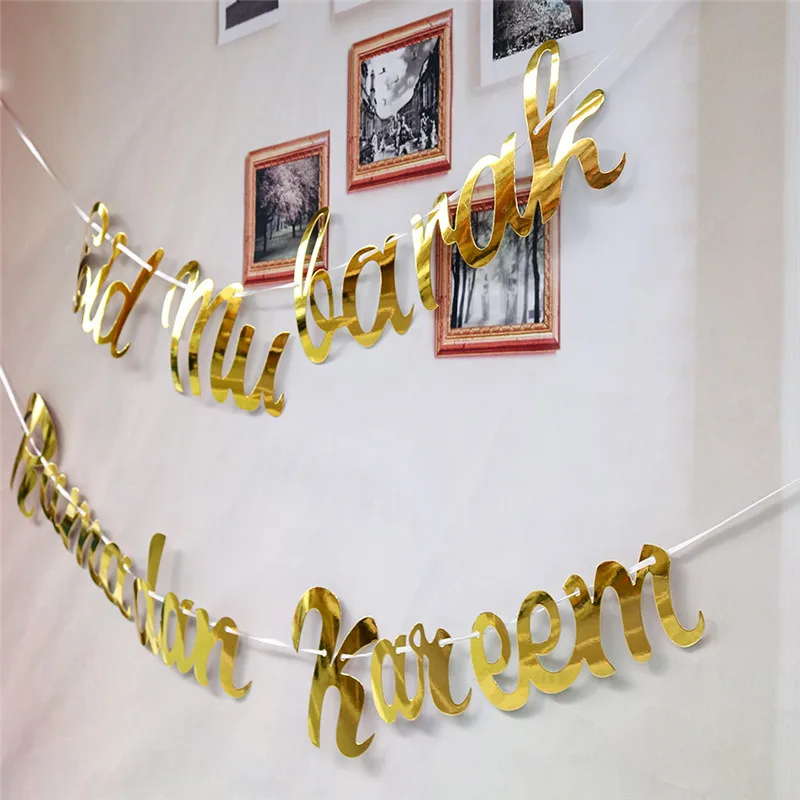 2022 блестящее зеркало Eid Mubarak Рамадан Kareem декоративные гирлянды флажки баннер Золотой Королевский синий цвет для дома