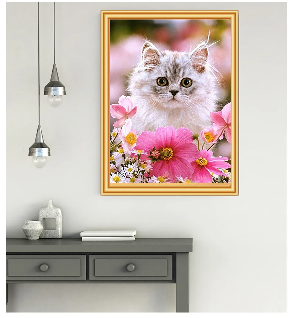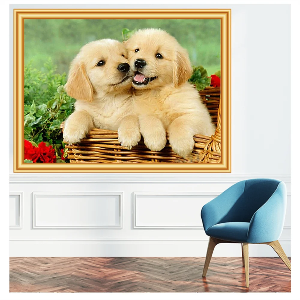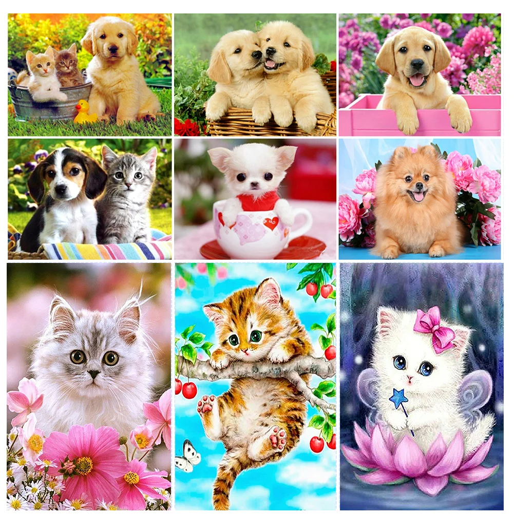 Картина из страз сделай сам с изображением животных, милая собака, кошка, полная круглая вышивка из страз, домашний декор для стен, подарок