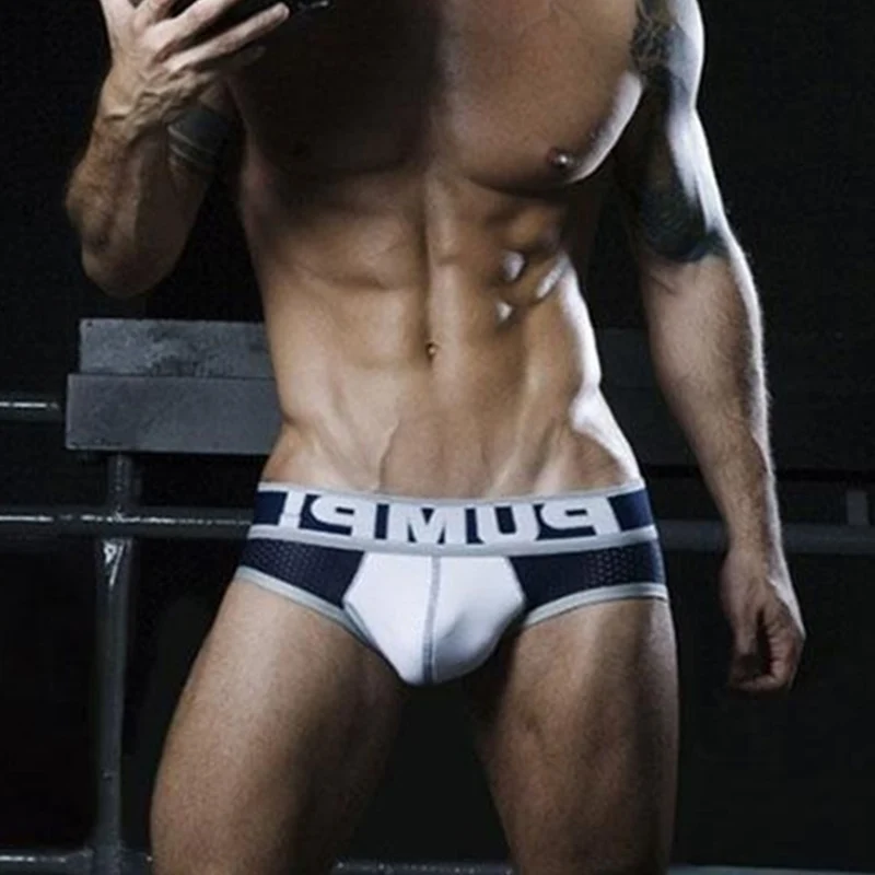 Трусы-брифы мужские сетчатые, дышащие, хлопковые, сексуальное нижне...