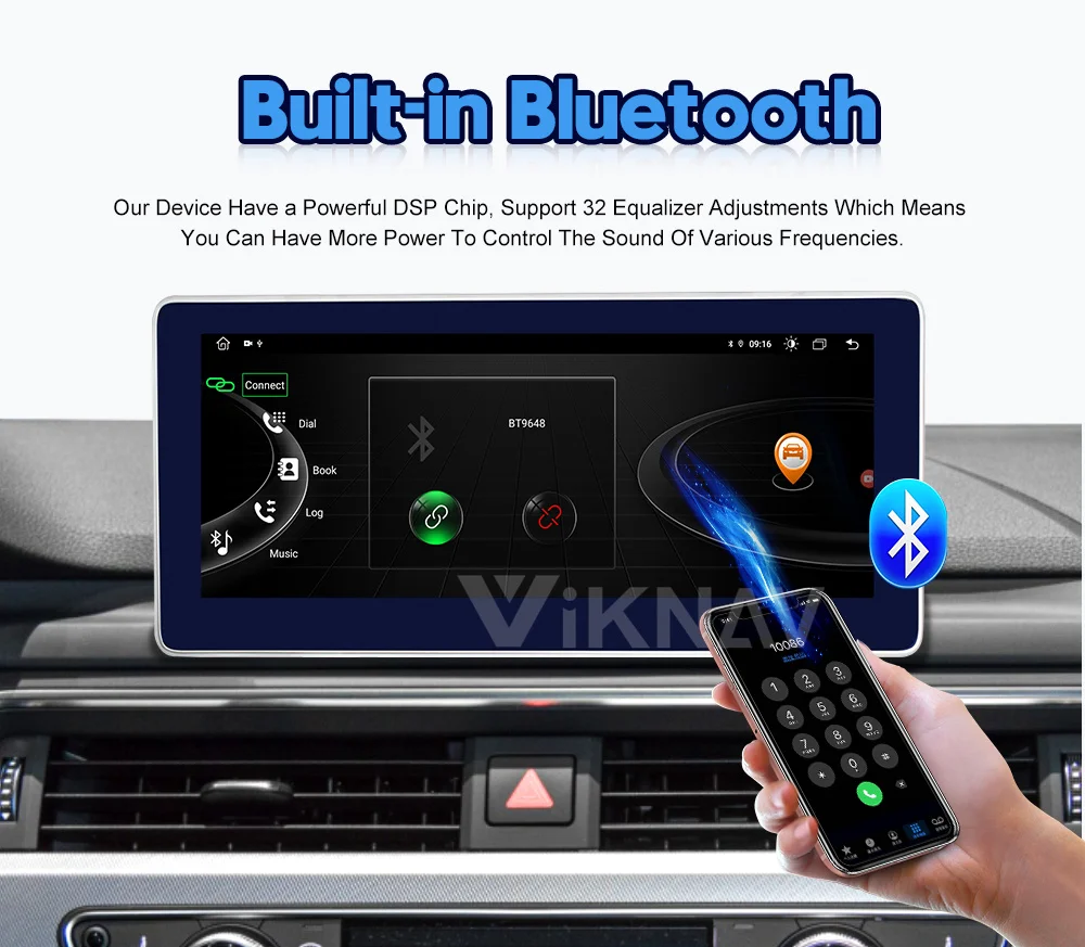 Встроенный BT и функция телефонной книги. Вы можете синхронизировать телефонную книгу с вашего мобильный телефон на этот блок, а затем сделать руки бесплатно мобильный телефон удобно и быстро. Вы также можете наслаждаться воспроизведением беспроводной музыки с вашего устройства BT (поддержка подключения Apple IOS/Android).