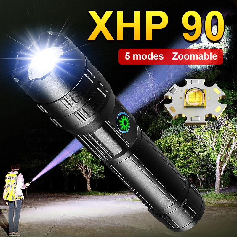 Самый мощный светодиодный фонарик XHP199 18650 26650, перезаряжаемый от Usb фонарик XHP90, светодиодные фонарики высокой мощности, тактический фонарь для кемпинга