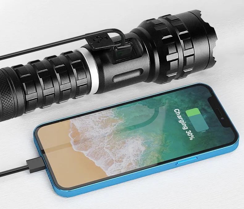 • Название: Смарт-фонарик XHP90• Размер изделия: 17 см * 4 см * 3,3 см• Вес изделия: 280 г• Модель светодиодный бусины: самая новая 4-х ядерный G4s фитиль• Режим переключения: 5 режимов (High - Medium - Low - SOS - Flash)• Диапазон: 800 метров• Режим масштабирования: телескопический зум• Тип батареи: 26650 или 18650• Время освещения: 4-10 часов• Уровень водонепроницаемости: IPX6• Материал: T6063-T6 авиационный алюминий• Цвет корпуса: черный• Способ зарядки: быстрая зарядка через USB