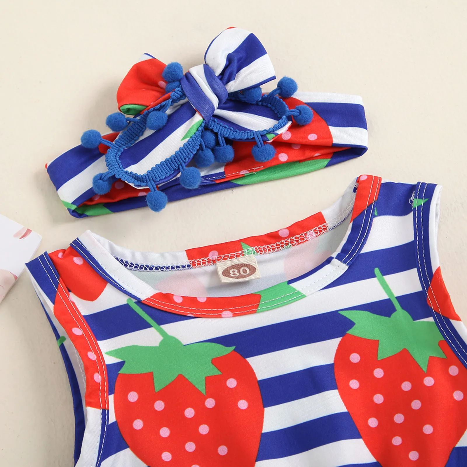 Боди для новорожденных девочек с принтом клубники и кисточками; Одежда для малышей; Комбинезон для новорожденных; Детский летний Боди; Повязка на голову