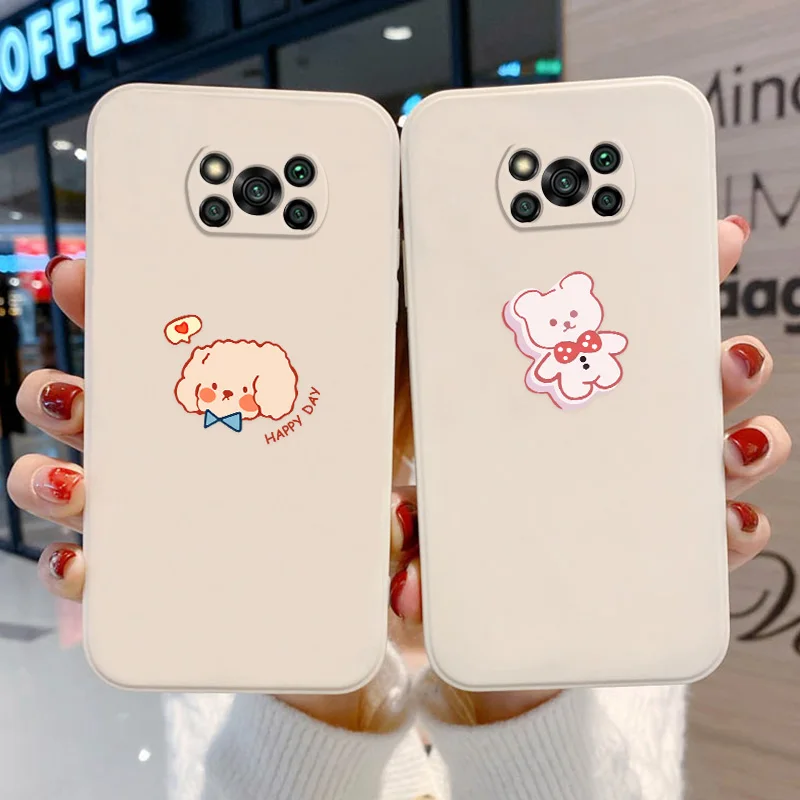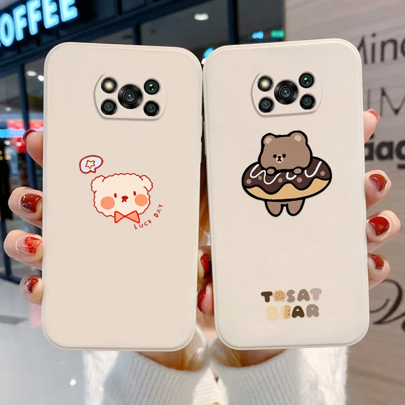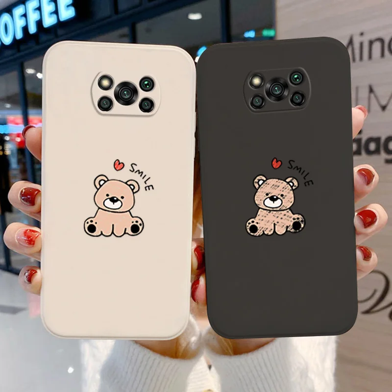 Model 2Couple Cute Bear Silicone Case for Xiaomi Poco X 3 Funda