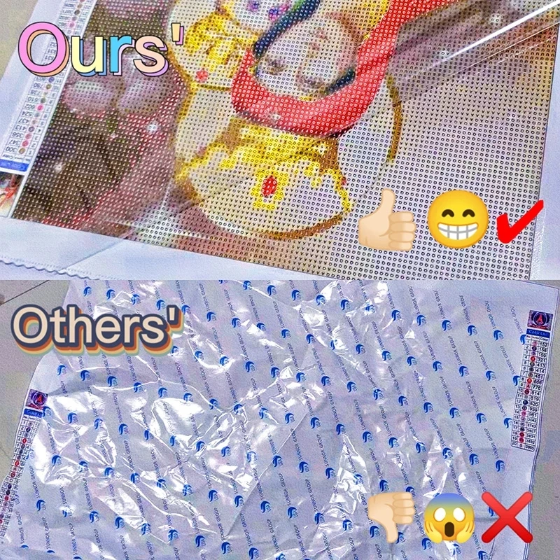 Наш: сумка на молнии значительно уменьшает вероятность отсутствия алмазов и очень удобна в разборке и может быть многоразового использования. Аккуратная и красиваяДругие: наиболее распространенный герметичный мешок, вы должны использовать контейнер, чтобы держать алмазы после того, как вы откроете его, что очень неудобно. Выглядит очень грязно.