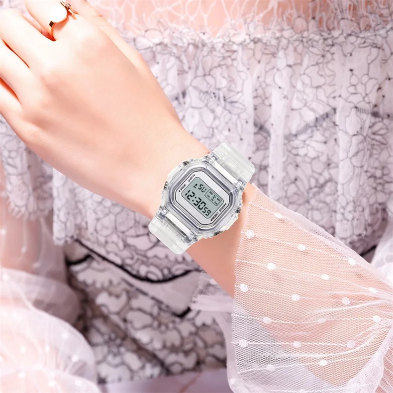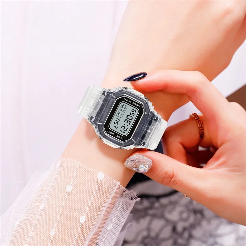 Прозрачные Цифровые часы, квадратные женские часы, спортивные элект...
