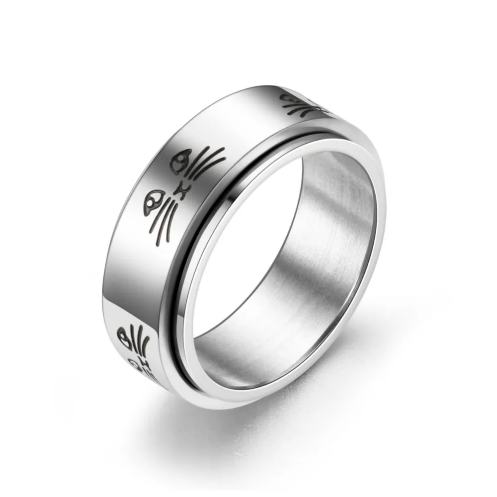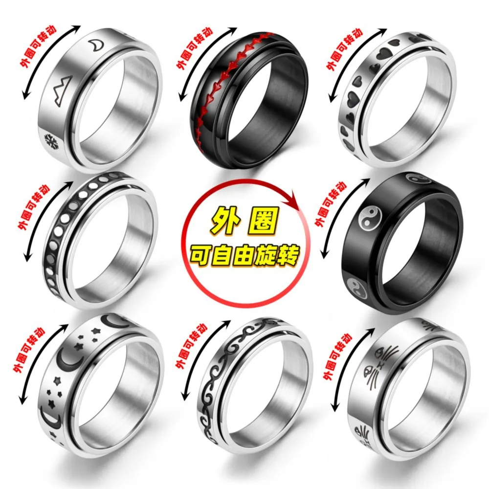 Новинка 2022, вращающееся кольцо кот удачи из титановой стали с изображением солнца, звезды, Луны, пары ювелирных изделий, производитель с возможностью регулировки