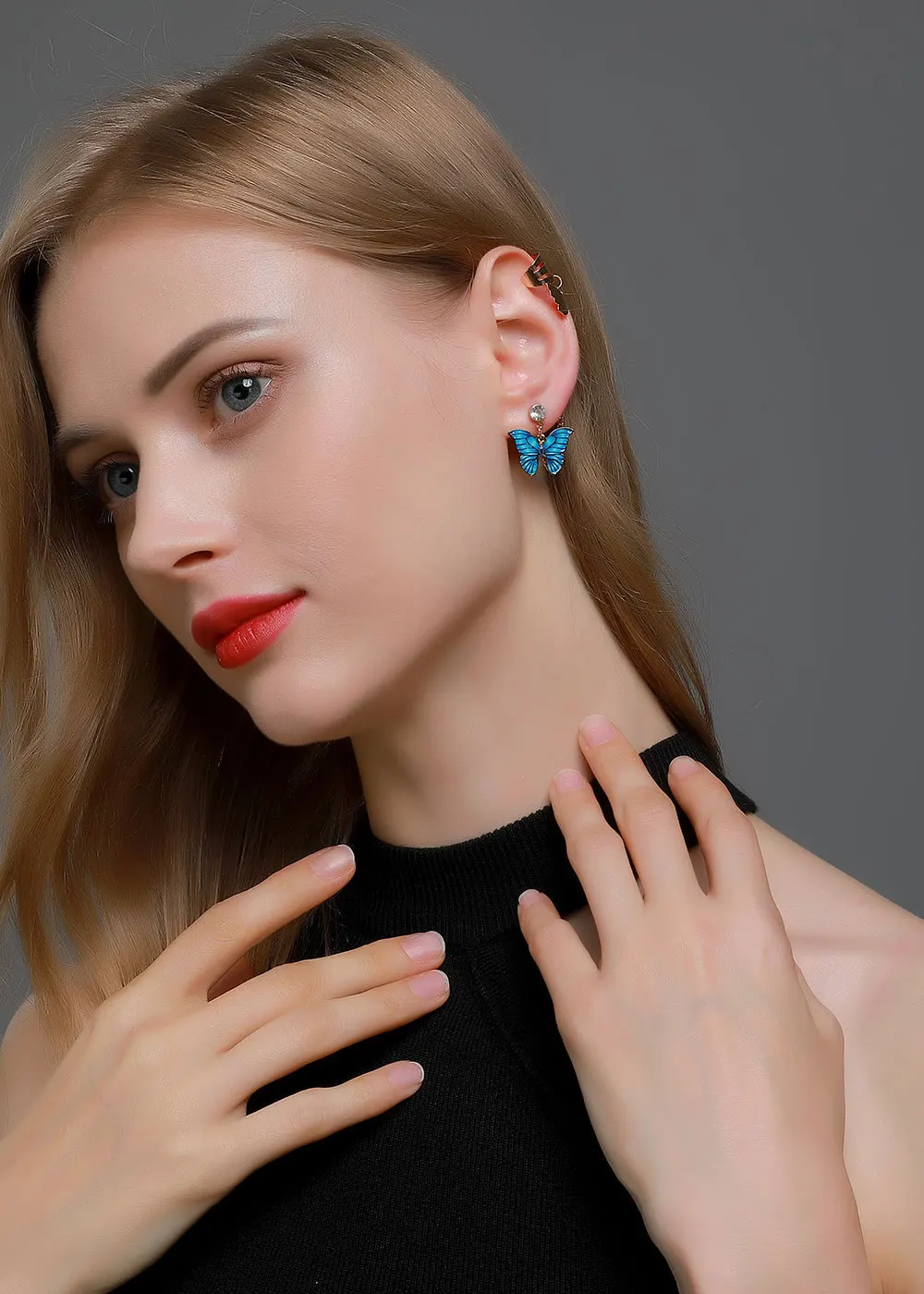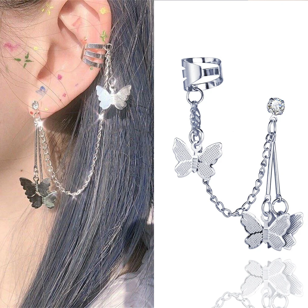 Модные серьги-клипсы в стиле панк с бабочками для подростков, женск...