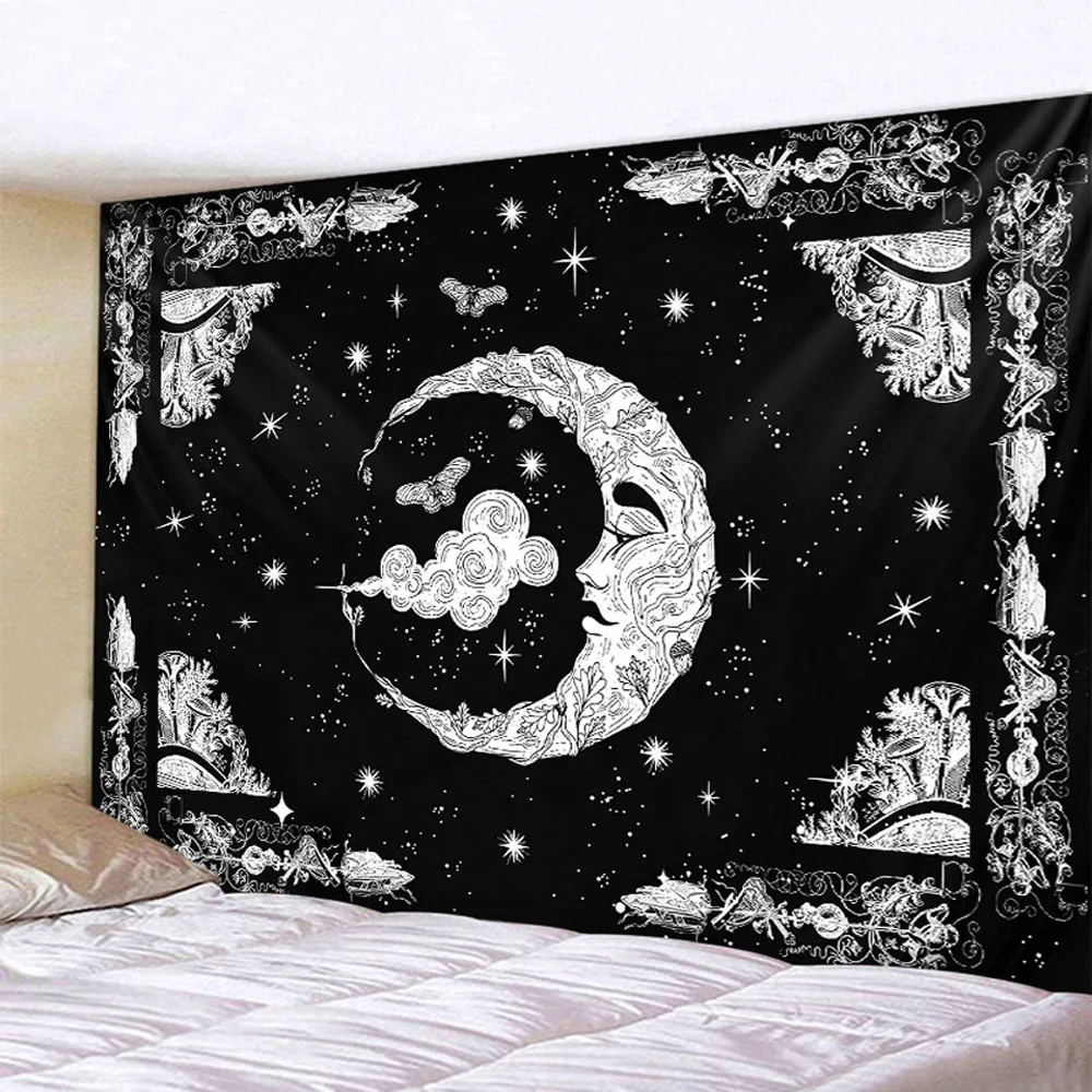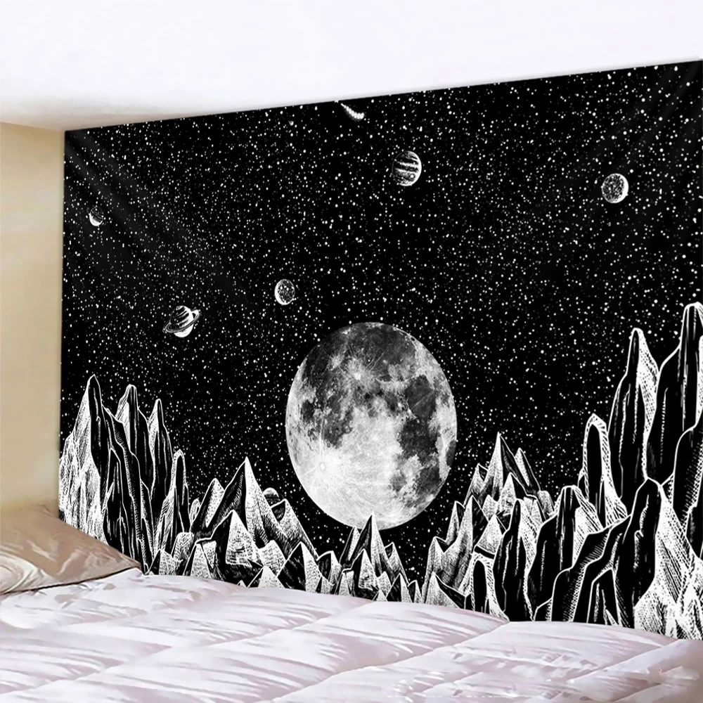 Черно-белая луна Мандала настенная подвесная спальня психоделическая сцена Звездное Искусство украшение для дома