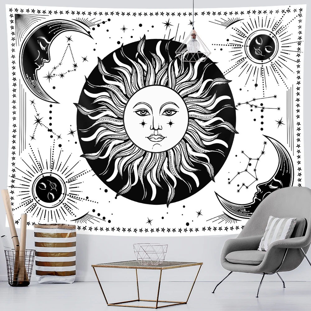 Гобелен Белый Черный Солнце Луна Мандала Таро гобелены Настенный де...