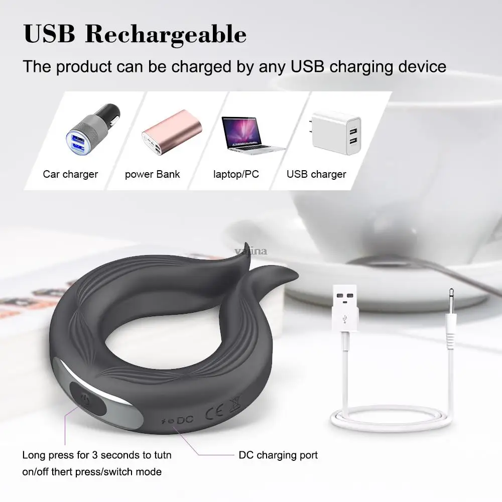 Перезаряжаемое вибрирующее кольцо на пенис Задержка эякуляции кольц...