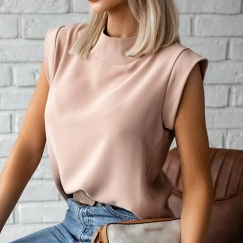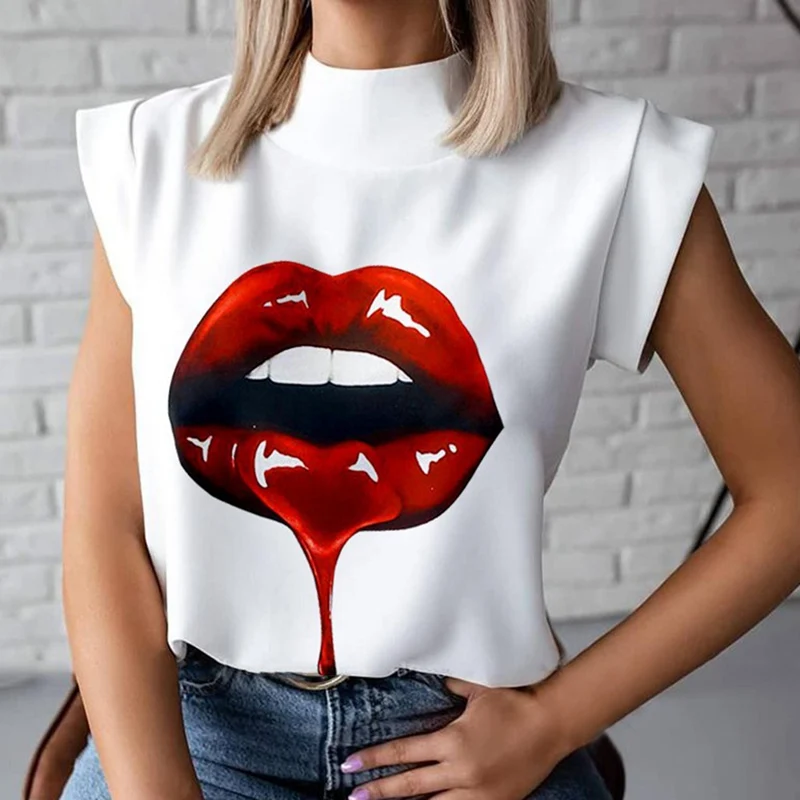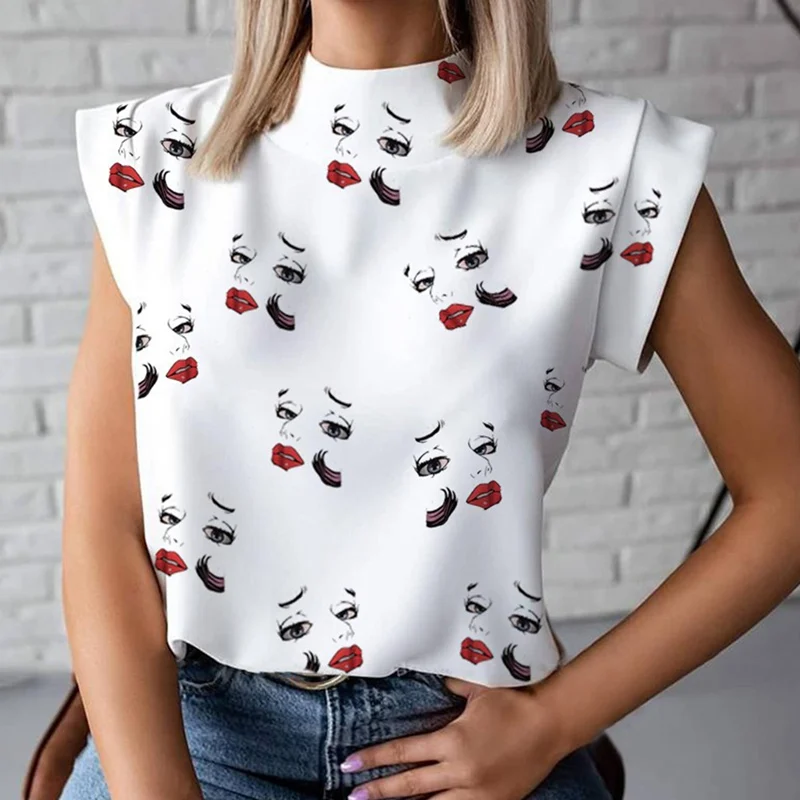 Женская блузка без рукавов, Повседневная элегантная офисная блузка с круглым вырезом и принтом, лето 2022