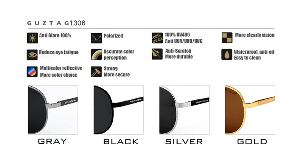 Солнечные очки GUZTAG поляризационные UV400 для мужчин и женщин, аксессуар для занятий спортом на открытом воздухе, вождения, 1306